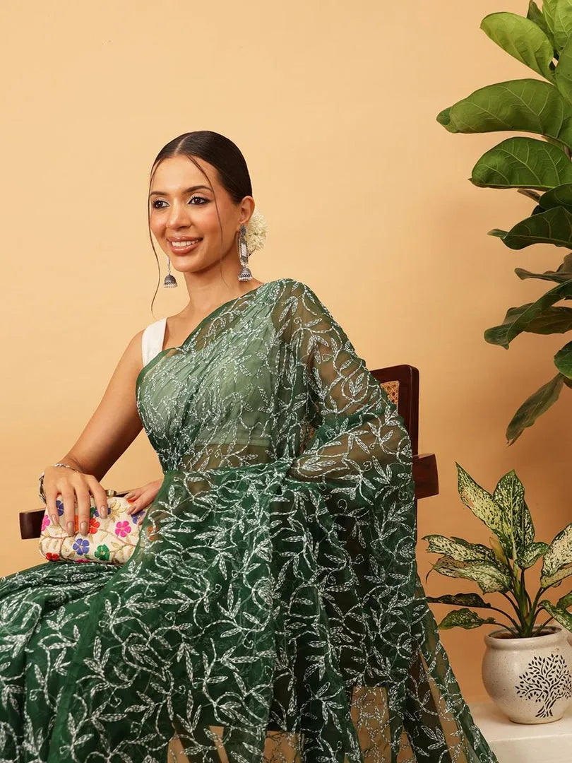 Georgette Chikankari Hand Embroidered Tepchi Saree